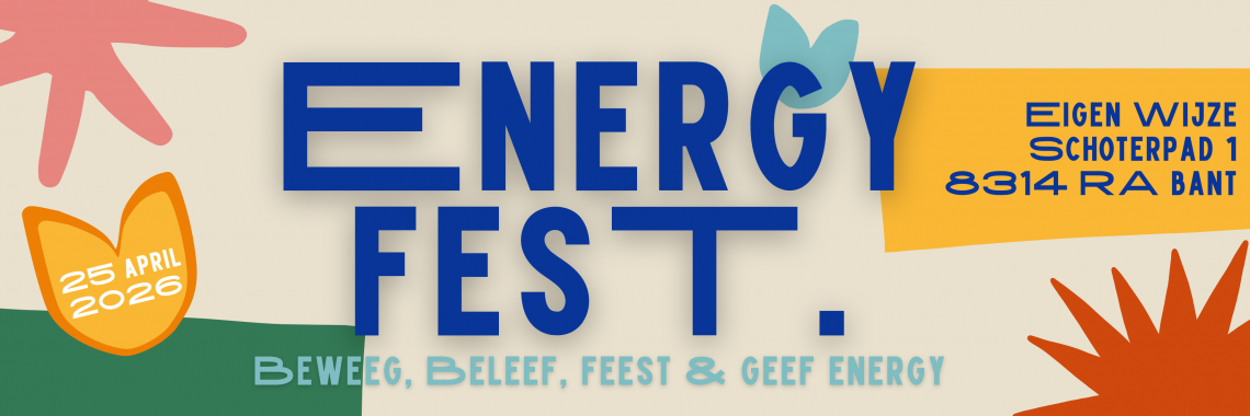 Op zaterdag 25 april 2026 organiseren we EnergyFest bij Vakantiepark Eigen Wijze in Bant. Een dag vol muziek, beweging en verbinding, speciaal georganiseerd om samen energie te delen voor het goede doel. Overdag kun je meedoen aan een fietstocht, sponsorloop en verschillende creatieve workshops. Er is voor iedereen iets te beleven.